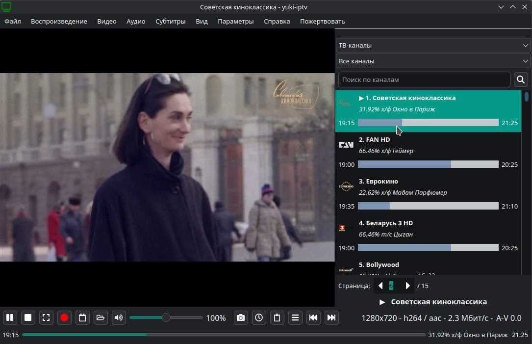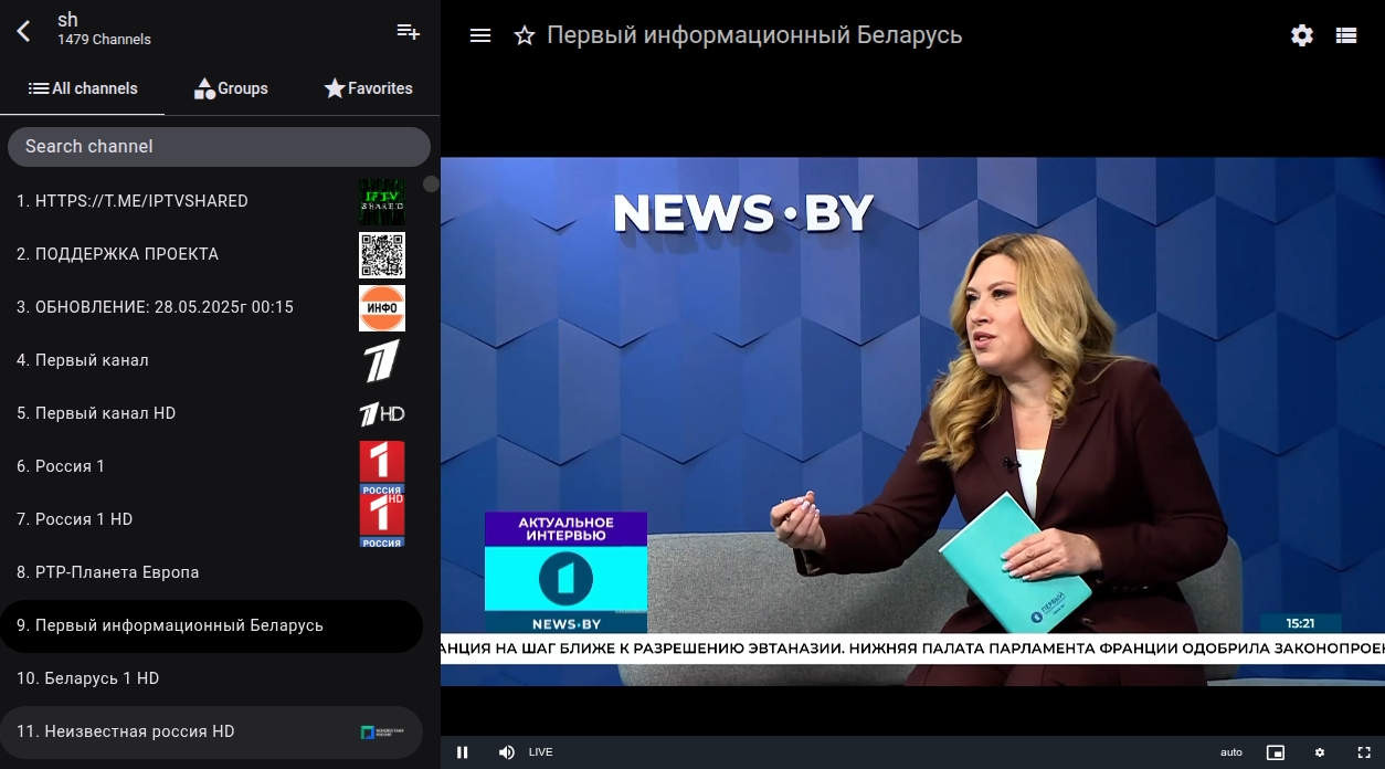 Умеет показывать картинку-в-картинке, отображать группы и сортировать каналы.